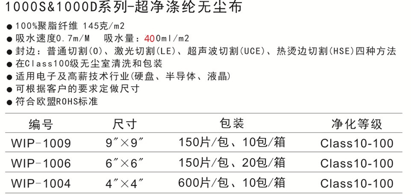 1000S/1000D系列-超凈滌綸無塵布